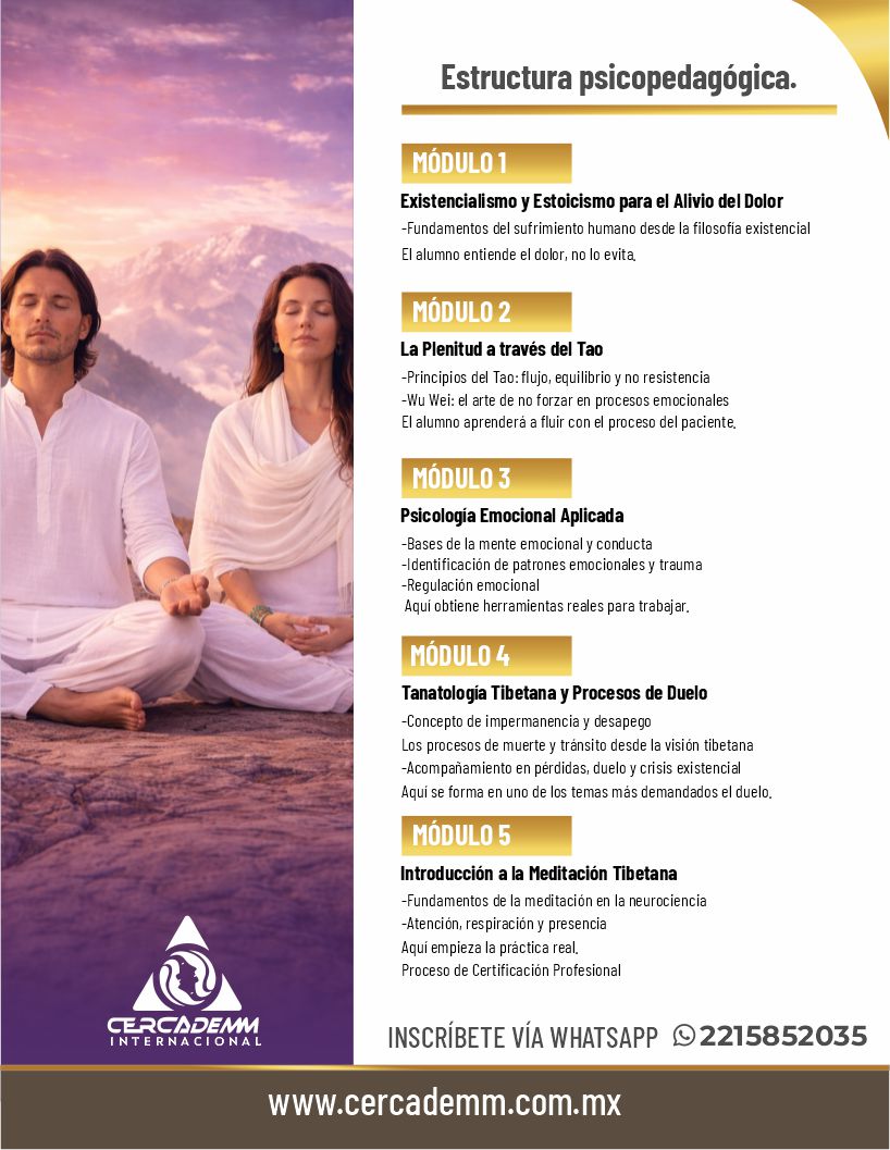 Experiencia y formación de psicoterapeutas, tanatólogos y especialistas en medicina tradicional y acupuntura.
